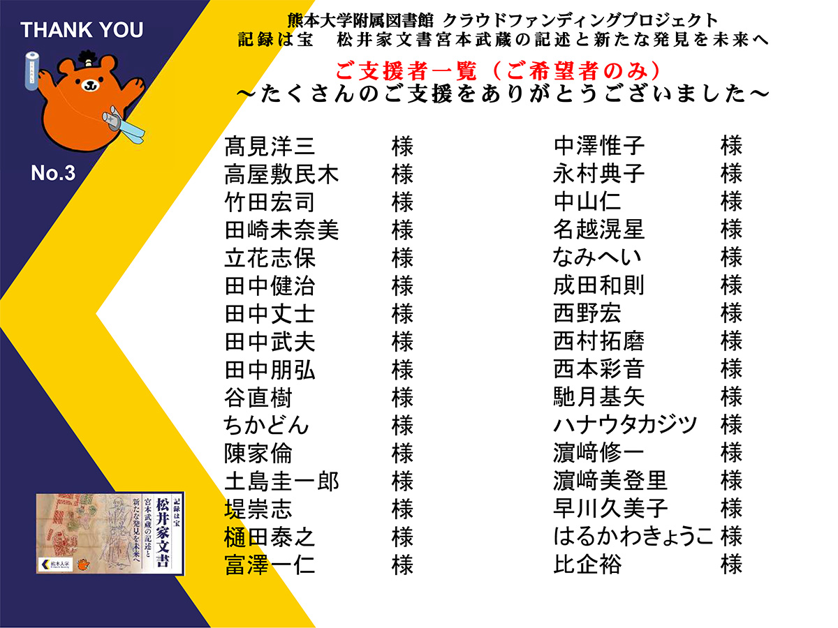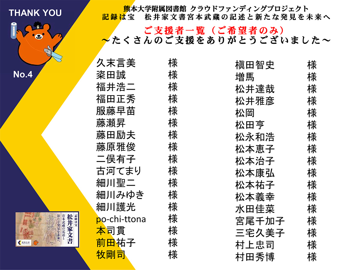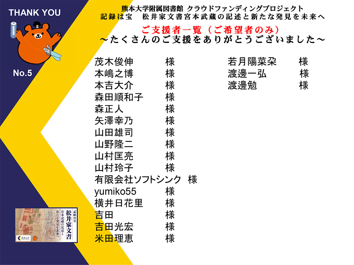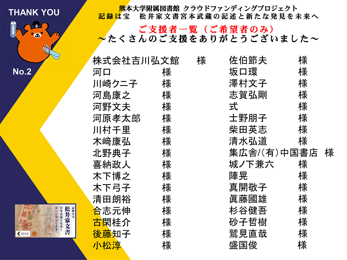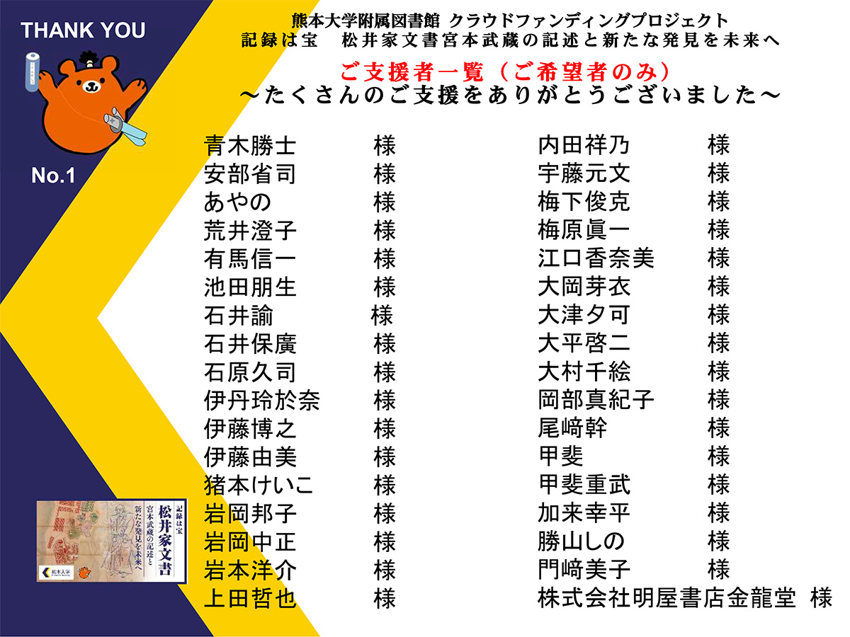 ご支援いただいた方々へ、心より御礼申し上げます。