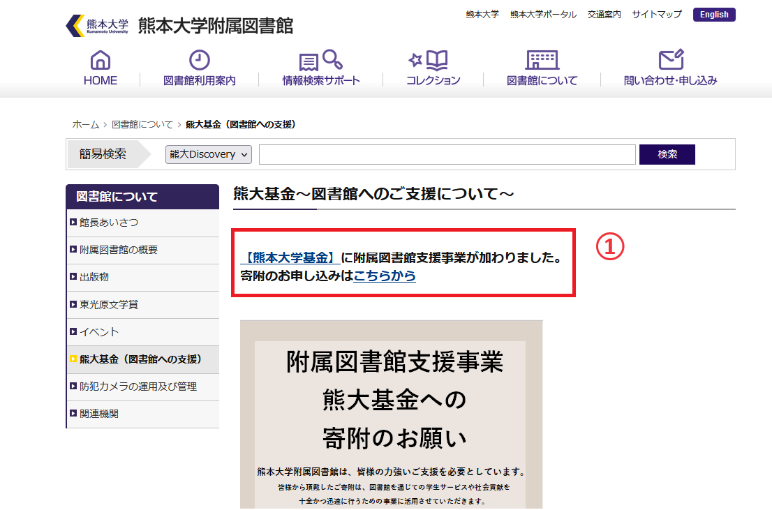 熊本大学附属図書館は、皆様の力強いご支援を必要としています。